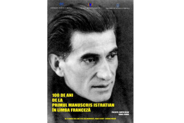 Muzeul Brăilei „Carol I” vă invită joi, 14 aprilie a.c., ora 11.00, la Casa Memorială „Panait Istrati”, din Grădina Publică, la un dialog despre începuturile literare ale marelui scriitor Panait Istrati.