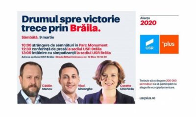 • turneul naţional de strângere de semnături pentru participarea la Alegerile Europarlamentare a Alianţei USR- PLUS ajunge şi la Brăila • evenimentul va avea loc sâmbătă,...