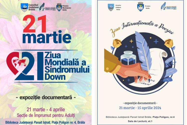 Biblioteca Județeană ”Panait Istrati” Brăila marchează data de 21 martie cu două expoziții documentare: Ziua Mondială a Poeziei și Ziua Mondială a Sindromului Down.
