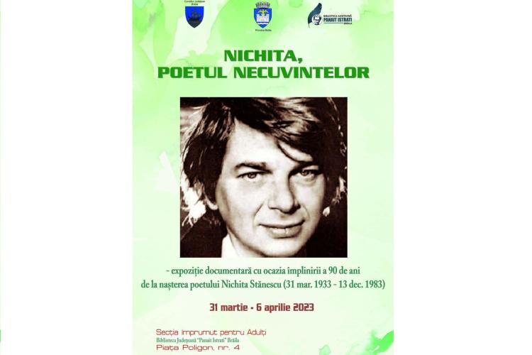 Biblioteca Județeană ”Panait Istrati” îl comemorează pe marele poet și eseist român Nichita Stănescu printr-o expoziție documentară intitulată ”Nichita, poetul necuvintelor”, organizată la Biblioteca Județeană „Panait Istrati” Brăila.