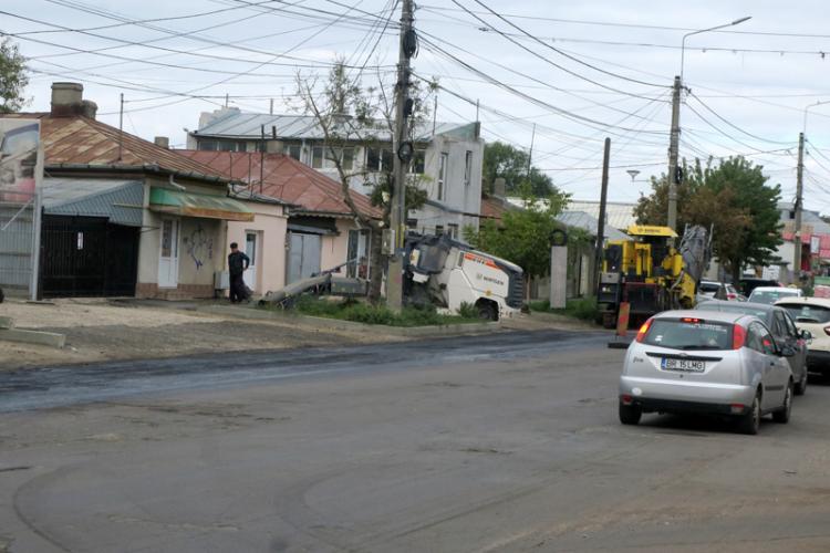 * prima zi, prima problemă: o mașină parcată pe prima bandă n-a putut fi mutată decât cu o autospecială de ridicare, deoarece proprietarul nu se afla în municipiu * turnarea noului covor asfaltic, din dreptul fostului sediu TUG până la intersecția cu strada Transilvaniei, va dura circa două săptămâni, estimează Primăria