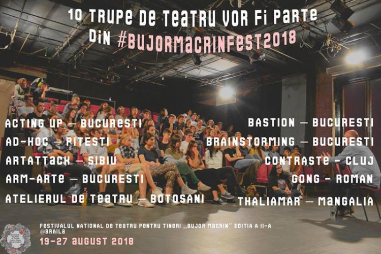 Până pe data de 27 august, Teatrul “Maria Filotti” din Brăila găzduieşte cea de a doua ediţie a Festivalului de Teatru pentru Tineri BUJOR MACRIN, eveniment care reuneşte tineri aspiranţi la lumea profesionistă a teatrului, veniţi din toată ţara. Derulat ca o adevărată caravană teatrală extrem de interesantă, festivalul se dovedeşte a fi o explozie de tinereţe, de energie şi talent, dar şi o întâlnire cu