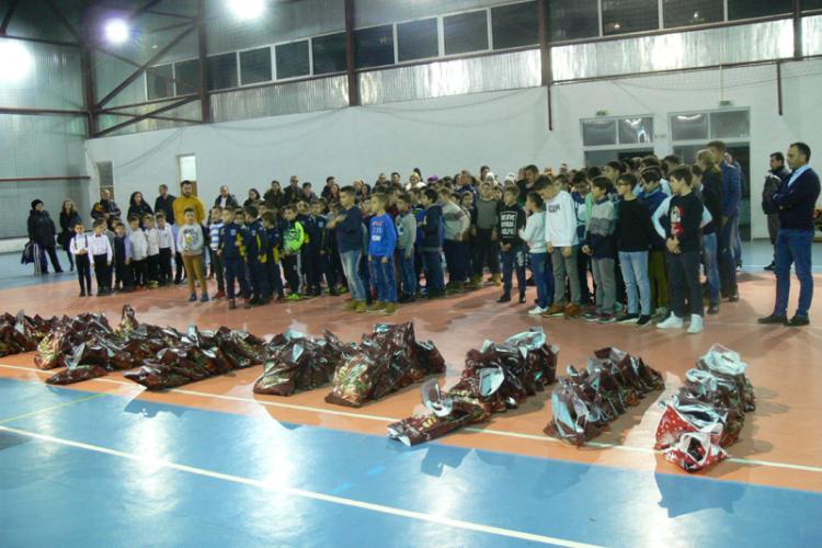 • în jur de 120 de copii au primit daruri la festivitatea care a avut loc în sala de sport a Şcolii Mihail Sadoveanu