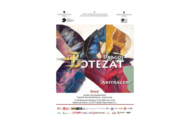 Consiliul Județean Brăila, prin Centrul Județean pentru Conservarea și Promovarea Culturii Tradiționale (Centrul de Creație) și Primăria Municipiului Brăila, în parteneriat cu Uniunea Artiştilor Plastici din România (UAPR) – Filiala Brăila organizează sâmbătă, 15 februarie, ora 12:30, la Galeria de Artă din Piața Traian nr. 2, vernisajul expoziţiei de pictură „Abstrageri” a artistului plastic Dragoș Botezat. Prezintă: Ana Amelia Dincă, curator și critic de artă.