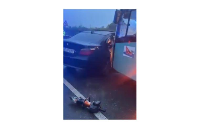Accident la ieșirea din Galați, spre Brăila. O șoferiță din Brăila nu a adaptat viteza la carosabil umed și a lovit un autobuz
