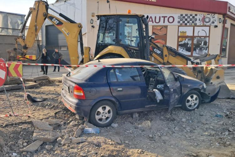 * în zona unde se efectuează lucrări, acesta a trecut printre balizele de semnalizare, lovind molozul și un utilaj parcat * șoferul susține că mașina sa ar fi rămas fără frâne * în urma evenimentului a rezultat vătămarea corporală a unei pasagere în autoturism, o femeie de 56 de ani