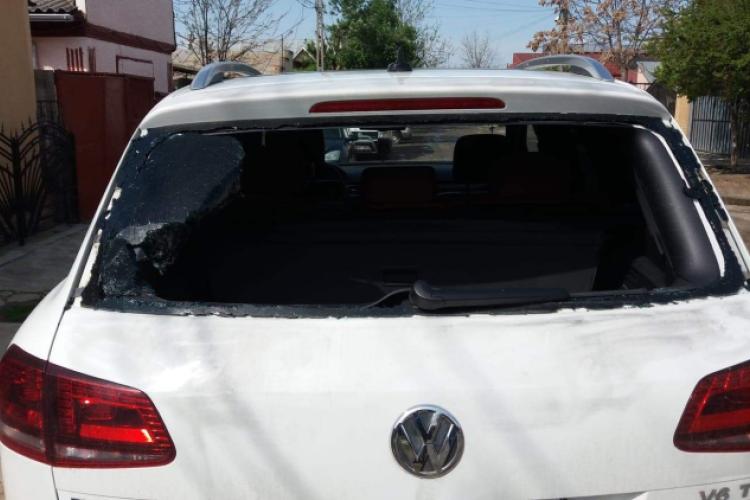Ca o paranteză, unul dintre jefuitori a căzut în fund înainte să apuce să spargă luneta mașinii de teren în care se afla geanta cu 100.000 de euro.