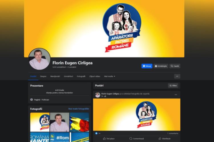 Și pentru ca lucrurile să fie cât mai clare pentru toată lumea, marți, omul de afaceri brăilean a decis să își schimbe pagina de Facebook în concordanță cu imaginea partidului din care face parte acum. Acesta a postat o fotografie cu sigla „Apărătorii Patriei Române” a AUR.