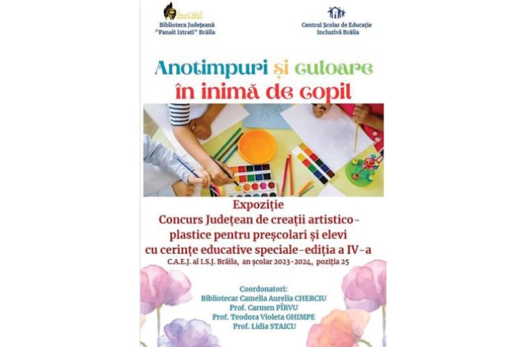 Biblioteca Județeană ”Panait Istrati” Brăila găzduiește o expoziție de creație plastică care cuprinde lucrările participanților la Concursul Județean de Arte vizuale ”Anotimpuri și culoare în inimă de copil” – ediția a IV-a.