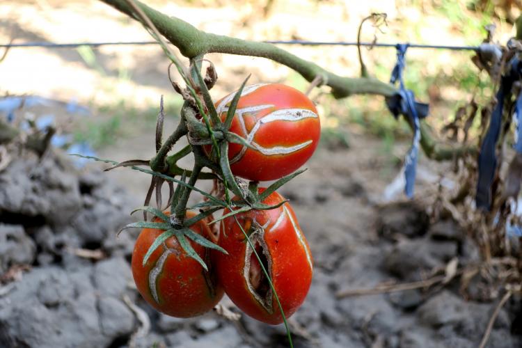 Eugen Velichi, şeful Oficiului Fitosanitar Brăila, ne-a explicat că, pe fondul uscăciunii şi al căldurii excesive, în vara aceasta a început mai devreme atacul păianjenului roşu comun, un dăunător care se hrăneşte cu seva din frunzele şi lăstarii tineri ai roşiilor. Astfel, dacă în mod normal acesta se manifestă după data de 1 august, de data aceasta a început să îşi facă simţită prezenţa încă de la începutul lunii iulie, împiedicând plantele să se dezvolte corespunzător. Tot vara secetoasă a favorizat apariţia şi dezvoltarea afidelor, acele insecte care sunt purtătoare ale virusurilor tomatelor. Astfel, virozele plantelor şi-au făcut şi ele apariţia mai devreme, împiedicând dezvoltarea normală prin afectarea frunzelor şi apariţia petelor inelare pe fructe. Aerul foarte uscat, cu umiditate sub 40%, a ”întreţinut” şi putregaiul apical care duce la apariţia petelor pe vârfurile fructului, atât la tomate cât şi la ardei.