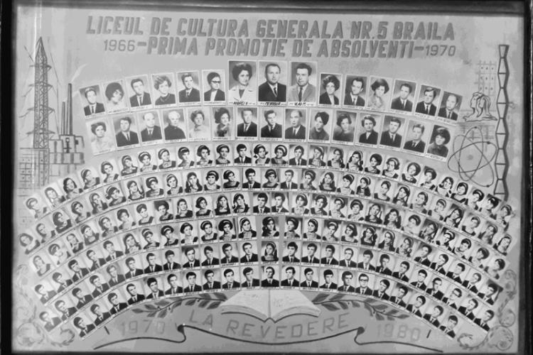 • vineri, 6 iunie, de la ora 10.00, prima generaţie de absolvenţi ai Liceului „Panait Cerna” Brăila (1966-1970) se întruneşte pentru a sărbători 55 de ani de la absolvire • din păcate, dintre cei 31 de profesori şi 153 de absolvenţi din anul 1970, au plecat în eternitate 30 de absolvenţi şi 28 de profesori