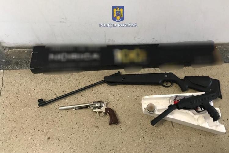 Arme trimise prin curierat. Pistoale și o armă neletală de tir sportiv supuse autorizării, ridicate de la trei brăileni