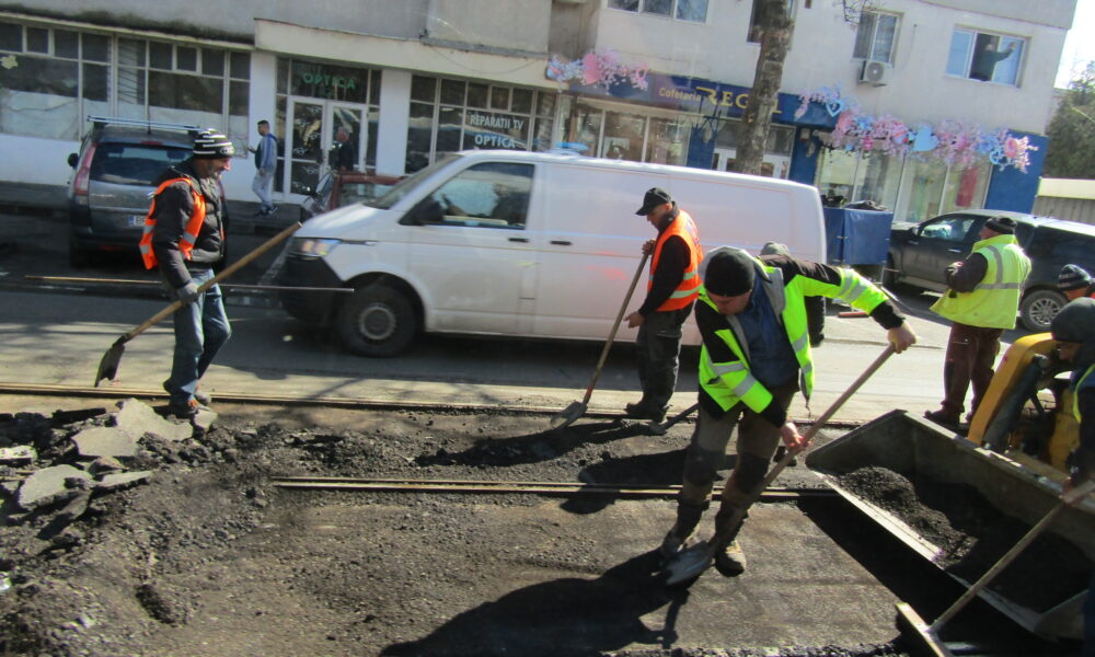 * se intervine pe aliniamentul liniei de tramvai, respectiv în sensul giratoriu * circulația nu este oprită, dar se desfășoară greoi, prin organizarea de șantier