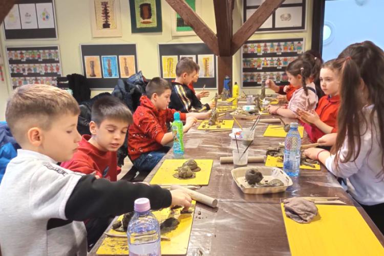 Atelier de modelaj în lut la Casa Umorului Desenat de pe Strada Ana Aslan 27, aparținând Muzeului Brăilei „Carol I”.