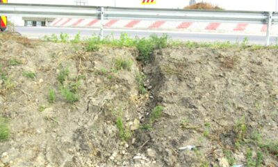 • după ploile din urmă cu câteva săptămâni, pământul a început să o ia la vale, apărând șanțuri care arată cât de deficitar a fost compactat...