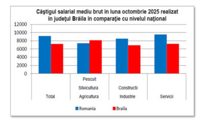 • față de octombrie 2024, salariile brăilenilor au crescut, în medie, cu 6,5 %, precizează reprezentanții Direcției Regionale de Statistică Brăila • la aceeași dată, la...