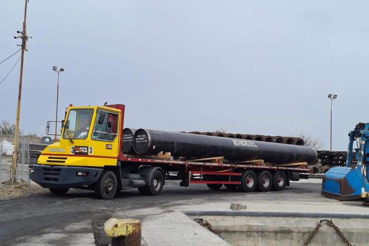 ”După descărcare, țevile vor fi încărcate în camioane pentru a fi transportate pe șantiere, iar în următoarele 10 zile va începe sudarea lor”, potrivit directorului general al companiei Transgaz, Ion Sterian.