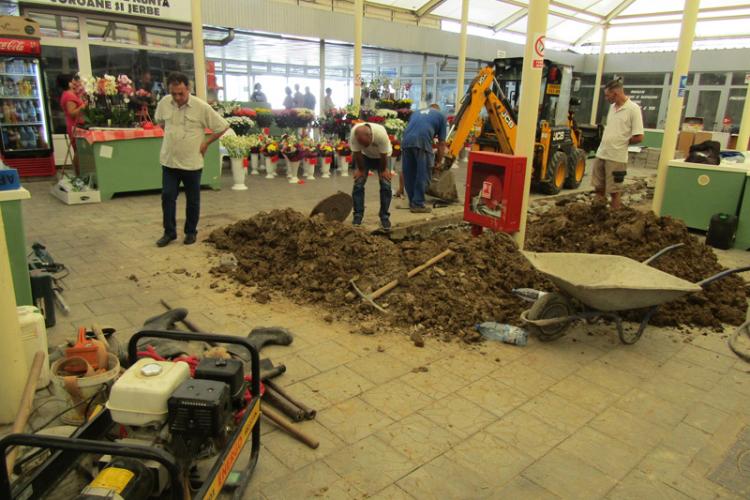 * comercianții s-au plâns de zgomot și de faptul că s-a săptat ditamai șanțul, în interiorul spațiului acoperit, în loc să fie folosite instrumente care să detecteze cu precizie locul avariei, despre care compania de apă se laudă că le are în dotare * la fața locului se poate constata, totuși, că s-a lucrat destul de îngrijit, în condiții nu tocmai prielnice