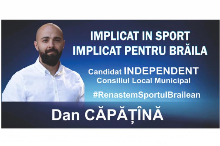 Dan Căpăţînă, singurul candidat independent pentru Consiliul Local Municipal Brăila de la aceste alegeri locale, s-a înscris în campania “Bătălia pe proiecte” a cotidianului “Obiectiv” cu un plan de sprijinire şi promovare a sportului şi cluburilor sportive brăilene. Antrenor de kickboxing cu performanţe notabile, Dan Căpăţînă susţine că are experienţa necesară organizării de evenimente sportive de amploare şi poate ajuta şi alte cluburi să găzduiască competiţii mari în oraşul nostru, lucru ce nu doar că va promova Brăila în lumea sportului românesc, dar va aduce şi mai mulţi bani la bugetul local din taxe şi impozite. De asemenea, în proiectul trimis, candidatul îşi propune să reînvie Gala Sportului Brăilean iar performanţele sportivilor din judeţul nostru să fie cunoscute şi recunoscute. În pus, acesta consideră că Gala va încuraja copii şi adulţi să participe la activităţi fizice recreative, dar şi să aleagă un stil de viaţă sănătos.