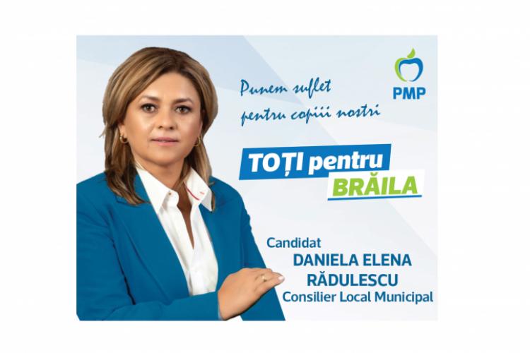 Pentru mine, DANIELA RĂDULESCU, mandatul de consilier local municipal este o oportunitate de a sprijini comunitatea brăileană, de a oferi ajutorul meu tuturor acelora care pot aduce un plus de valoare pe plan local”, declară public candidatul PMP la CLM. De altfel, nu este prima dată când oferă un astfel de sprijin. Mai precis, când ziarul “Obiectiv – Vocea Brăilei” a demarat Bătălia pe proiecte în 2012, Rădulescu a oferit o bursă unei tinere talentate de la Liceul de artă “Hariclea Darclee”. Şi s-a ţinut de cuvânt.