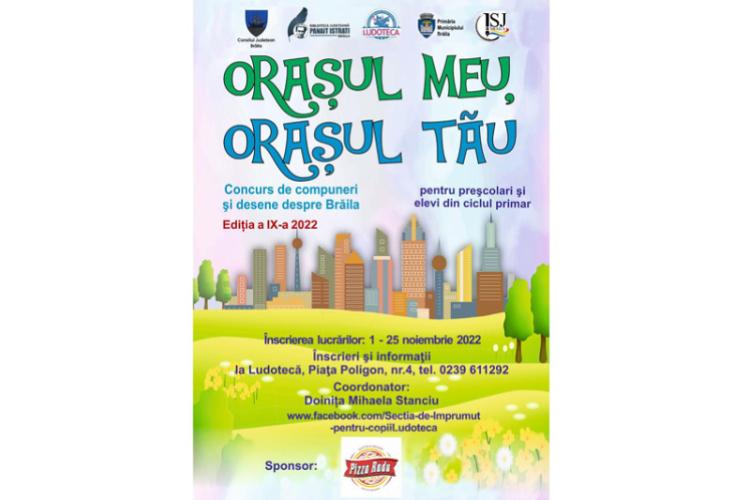Se cunoaște faptul că Brăila este un oraș cu mulți copii talentați și tocmai de aceea, Biblioteca Județeană „Panait Istrati” Brăila – Secția de Împrumut pentru Copii.Ludoteca, în parteneriat cu Inspectoratul Școlar Județean Brăila, lansează concursul de desene și eseuri cu tema „Orașul meu, orașul tău”, ediția a IX-a.
