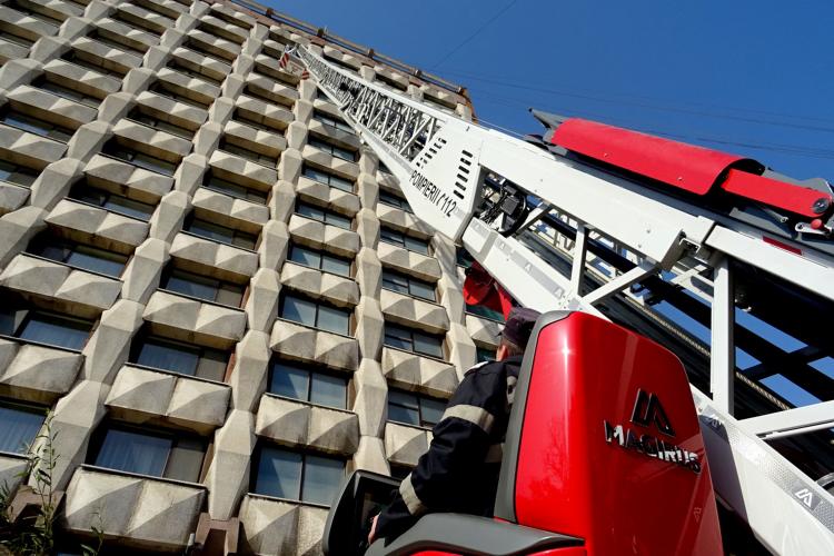• este vorba despre o autoscară mecanică de ultimă generaţie, marca IVECO, achiziţionată recent, prin Programul Operaţional Infrastructură Mare • autospeciala are capacitatea de a ridica o nacelă până la maximum 45 de metri înălţime şi este dotată cu un lift special pentru coborârea victimelor • ieri, autoscara a participat la un exerciţiu ce a presupus salvarea unei persoane de la etajul 9 al hotelului Traian • exerciţiul a avut mai multe situaţii tactice, fiind conceput în aşa fel încât să arate capacitatea de reacţie şi gradul de specializare a forţelor angrenate • astfel, a mai fost simulată şi intervenţia la un accident grav produs pe un Drum European, cu trei maşini implicate şi zeci de răniţi