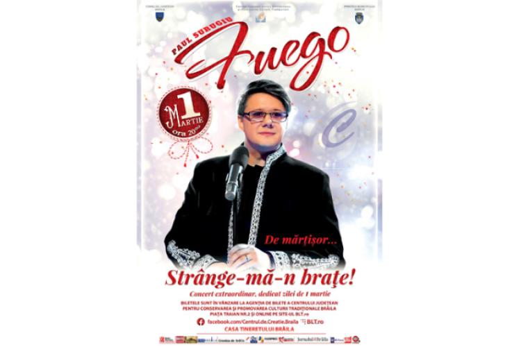 Cunoscutul artist Paul Surugiu-Fuego va concerta, din nou, la Brăila, iar biletele puse în vânzare la Centrul de Creație Brăila, precum și în mediul online, s-au epuizat, deja, de la sfârșitul lunii ianuarie, informează organizatorii evenimentului.