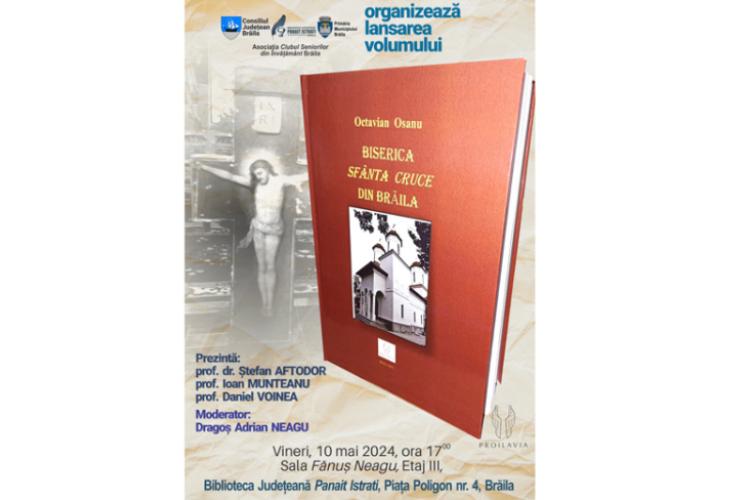 Brăilenii iubitori de istorie și nu numai sunt așteptați vineri, 10 mai, ora 17.00, la lansarea monografiei „Biserica Sfânta Cruce din Brăila”, de prof. Octavian Osanu. Evenimentul are loc în Sala „Fănuș Neagu” a Bibliotecii Județene „Panait Istrati” Brăila. Moderator al manifestării este Dragoș Neagu, directorul BJPI Brăila. Prezintă: prof. dr. Ștefan Aftodor, prof. Ioan Munteanu și prof. Daniel Voinea.