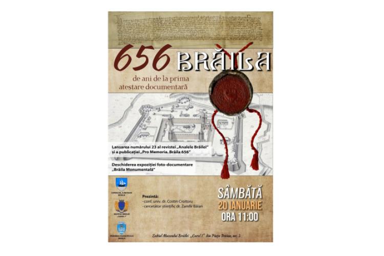 Cu acest prilej, Muzeul Brăilei „Carol I” organizează o serie de manifestări, atent pregătite, având ca temă „Brăila – 656 de ani de la prima atestare documentară”. Acestea se vor desfășura la sediul central al Muzeului Brăilei „Carol I”, din Piața Traian, nr. 3, Sala „Regele Ferdinand I și Regina Maria”, în ziua de sâmbătă, 20 ianuarie 2024, începând cu ora 11.00.