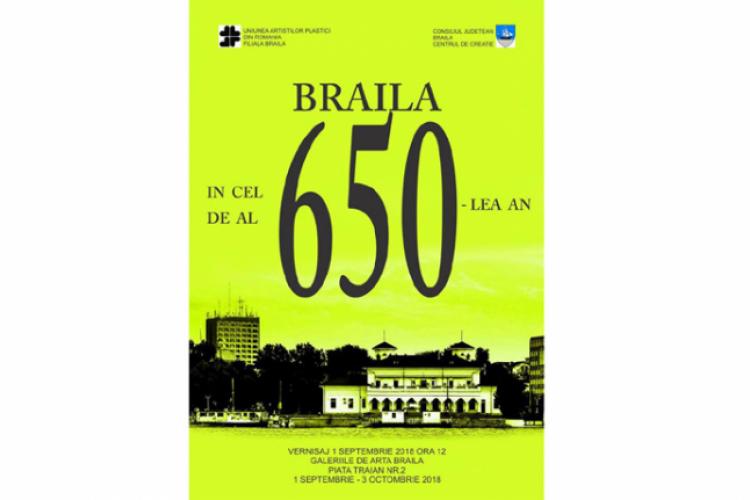 Sâmbătă, 1 septembrie 2018, la Galeria de Artă Brăila din Piaţa Traian nr. 2 a avut loc vernisajul expoziţiei “BRĂILA ÎN CEL DE AL 650-LEA AN”. La evenimentul organizat de Filiala Brăila a Uniunii Artiştilor Plastici din România, Consiliul Judeţean Brăila şi Centrul de Creaţie Brăila, 23 dintre membrii Filialei Brăila a U.A.P.R. au ridicat pe simezele Galeriei de Artă impresiile lor artistice vis-a-vis de reperele istorice, geografice sau sentimentale, toate reprezentând Brăila cu duioşie, siguranţă sau revoltă. Au fost expuse lucrări de pictură, grafică şi sculptură ale artiştilor: Mariana Bogdan, Maricica Cârstiuc, Cârstiuc Sorinel, Trandafira Cojocaru, Dascălu Ovidiu Pict, Ana-Maria Dobre, Vasile Gaiţă, Vasilica Gavrilă, Florentina Giol, Marilena Ioanid, Mânzu Maria Mădălina Art, Hugo Mărăcineanu, Walter Mărăcineanu, Angelica Deacu, Gheorghe Mosorescu, Nicoleta Olteanu, Cristian Radu, Ion Radu, Vasile Sarca, Raluca Spătaru Iancu, Narcisa Stejeran, Traian Tsamuris, Marius-Gheorghe Teodorescu.