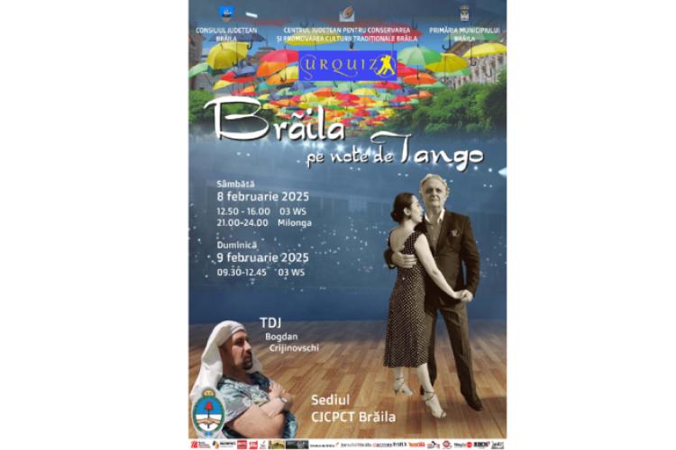 Este vorba de evenimentul cultural-artistic dedicat artei tango-ului, organizat de Consiliul Județean Brăila, prin Centrul Județean pentru Conservarea și Promovarea Culturii Tradiționale, Primăria Municipiului Brăila și Școala de dans Urquiza.