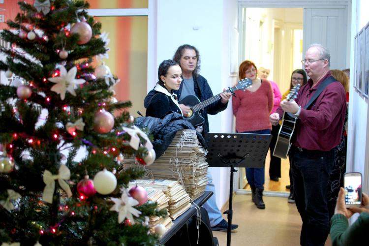 Primii care ne-au călcat pragul redacţiei au fost cei de la Forumul Tinerilor Brăila, care ne-au încântat cu frumosele colinde alese. Apoi, cunoscutul ansamblu de colindători de la Ciocile ne-au oferit un adevărat spectacol. Trebuie precizat că