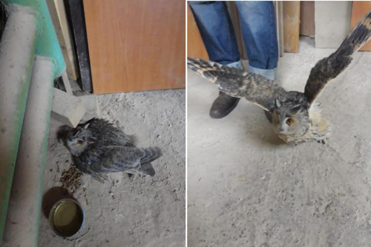 Bufniţă posibil rănită, salvată de un ONG din Brăila