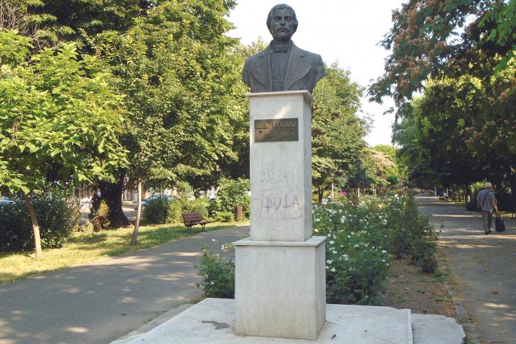 Aceștia au mâzgălit soclul monumentului atât în partea din față, cât și în lateral, cu majuscule, inscripționându-l cu obscenități. Nu este pentru prima dată când bustul de pe bulevard este vandalizat, el a mai fost mâzgălit cu grafitti și în urmă cu un an, ceea ce înseamnă că monumentul de bronz a devenit ținta predilectă a huliganilor care-și fac veacul în zonă. La doi pași de monument, în dreapta, se afla, ieri, o grămadă consistentă de coji de semințe de floarea soarelui, împrăștiate lângă bancă, precum și PET-uri goale, aruncate în spațiul verde.