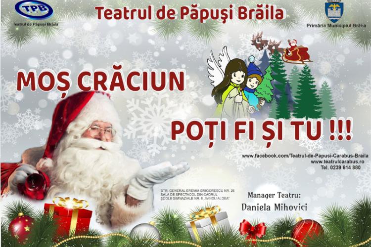 Teatrul de Păpuși Brăila organizează Campania intitulată “MOȘ CRĂCIUN POȚI FI ȘI TU!” care an de an a făcut copiii mai puțin norocoși să zâmbească și – încă – să creadă în Magia Sărbătorilor de Iarnă.