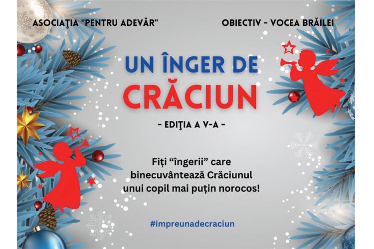 Campania “Un înger de Crăciun”, ediția a V-a, este organizată de Asociația “Pentru Adevăr” și cotidianul “Obiectiv – Vocea Brăilei”, cu ajutorul “spiridușilor” de la Forumul Tinerilor din România – Brăila.