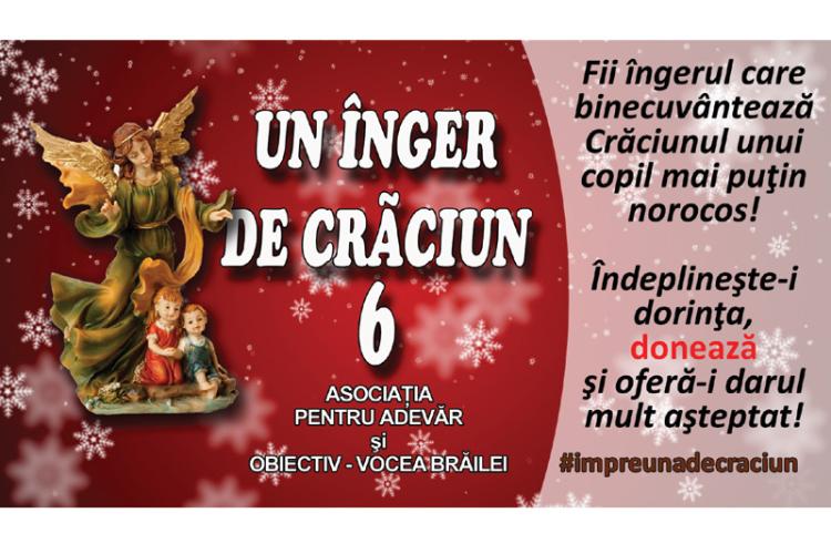 Cea de-a șasea ediție a campaniei “Un înger de Crăciun”, organizată de cotidianul “Obiectiv – Vocea Brăilei” și Asociația “Pentru Adevăr”, cu sprijinul Forumului Tinerilor Brăila, ne-a arătat încă o dată că bunătatea nu cunoaște limite! Zeci de oameni au dorit să fie “îngeri” de Crăciun pentru copiii mai puțini norocoși din municipiul și județul Brăila și astfel am putut distribui toate cele peste 60 scrisori primite până acum pe adresa redacției.