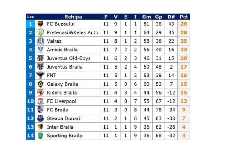 În etapa a 11-a, primele două clasate, FC Buzăului și Pretenașii&Keleș Auto, au făcut o ultimă verificare înaintea meciului direct dintre ele care este programat în runda următoare. Ambele au obținut victorii categorice. Echipa de pe locul al treilea, Valraz, s-a chinuit să obțină o victorie la limită, 6-5, în partida cu ocupanta locului al 13-lea, Inter Brăila.