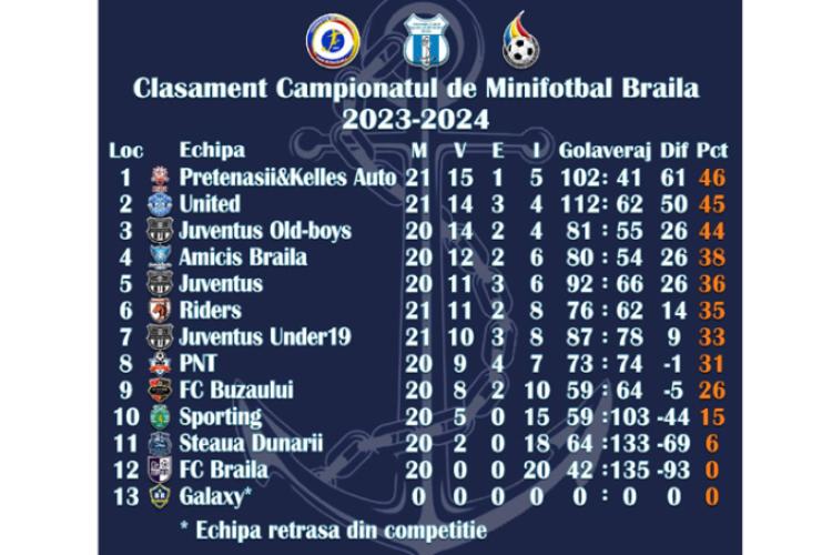 Campionatul de Minifotbal Brăila. United a realizat scorul etapei a 24-a, 13-1, în disputa cu Steaua Dunării