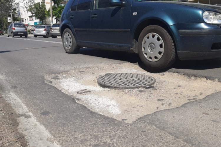 De aproape două săptămâni, o canalizare în jurul căreia s-a decopertat asfaltul îngreunează traficul de pe Strada Şcolilor, în apropierea Pieţei Microhală.