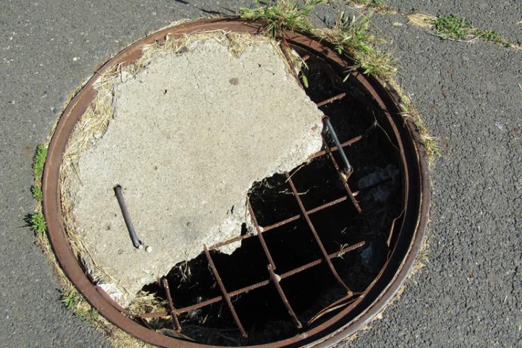 Capacele de canalizare din fontă au fost mereu ţinta hoţilor şi a căutătorilor de fier vechi, fenomenul cunoscând o amploare serioasă după 1990. Motiv pentru care compania de apă, pentru diminuarea pagubelor produse şi descurajarea vandalilor, a trecut la confecţionarea din beton a unor astfel de capace. În toamna anului 2022, ziarul nostru semnala distrugerea unui capac din beton de la intersecția Bulevardului Cuza cu strada Mihai Eminescu, iar CUP Dunărea a procedat la aducerea la cotă şi încastrarea în beton a capacului, pe 10 ianuarie 2023. Acesta trebuia să reziste ani de zile, însă în vara aceluiași an deja era ”terminat”. Compania în cauză a contrazis faptul că distrugerea capacului din beton în luna august s-ar fi datorat lucrului de proastă calitate, precizând că acel capac gros de 10 cm a fost spart intenţionat pentru a i se fura armătura metalică.