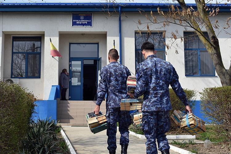 Cărți și jucării donate de marinarii militari brăileni copiilor din trei localități aflate pe malul Dunării, între Tulcea și Mahmudia.
