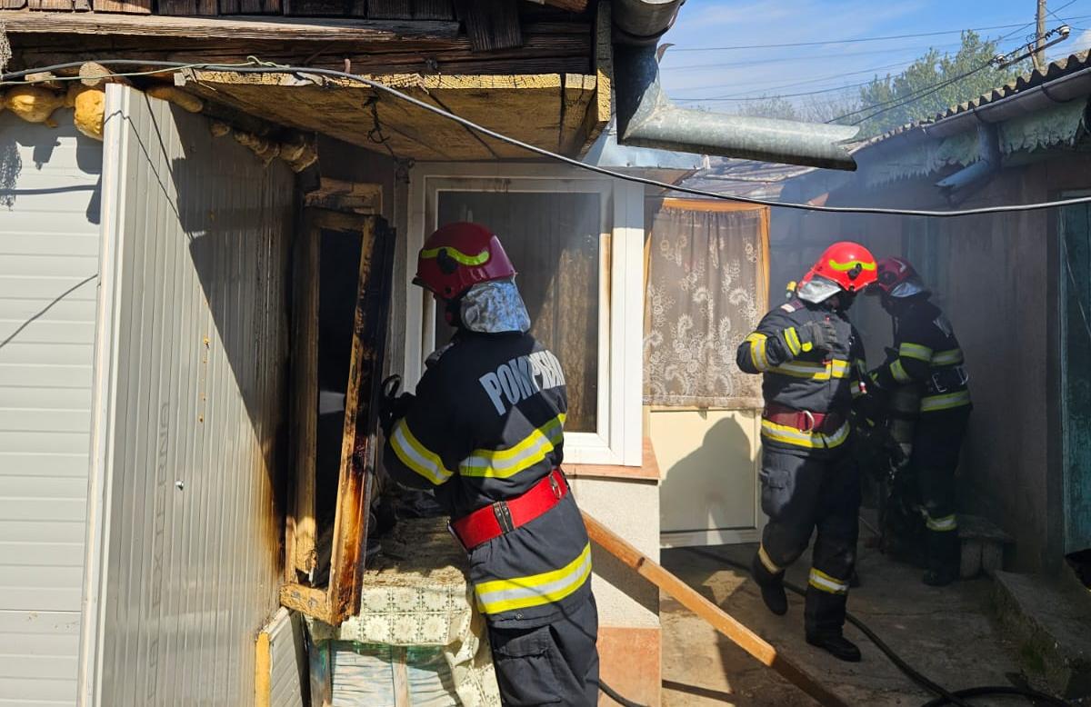 Casă distrusă de incendiu în Brăilița. Pompierii au găsit în interior o femeie de 74 de ani, decedată