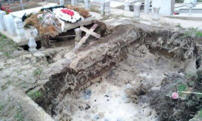 • terenul pe care sunt amplasate locurile de veci a cedat din cauza infiltrării unei mari cantităţi de apă, pe fondul unei avarii apărute la conducta...