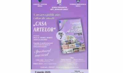 • luni, 9 martie, va fi lansat numărul şapte al publicaţiei culturale anuale “Casa Artelor”, realizată de Şcoala Populară de Arte “Vespasian Lungu” Brăila, în Sala...