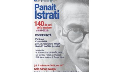 • vineri, 8 noiembrie, Institutul Cultural Român din Paris organizează colocviul „Panait Istrati 140 de ani (1884-2024). Kyra Kyralina 100 de ani (1924-2024)” • cu acest...