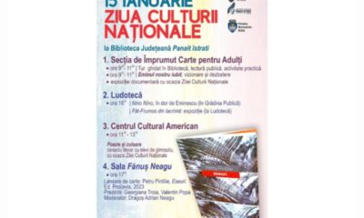 • pe 15 ianuarie se împlinesc 174 ani de la nașterea poetului Mihai Eminescu, iar Biblioteca Județeană a pregătit mai multe evenimente Ziua de 15...