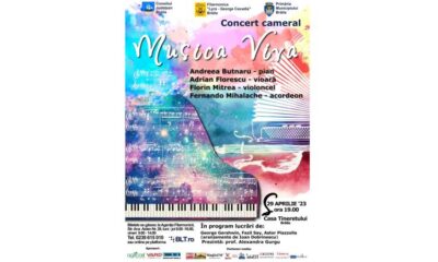* concertul are loc sâmbătă, 29 aprilie, ora 19.00, și va fi susținut de membrii ansamblului „Musica Viva” – Andreea Butnaru (pian), Adrian Florescu (vioară), Florin...