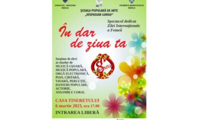 * evenimentul, coordonat de prof. Florin Lazăr, va avea loc în Sala de spectacole a Școlii de Arte „Vespasian Lungu” Brăila, iar intrarea este liberă *...