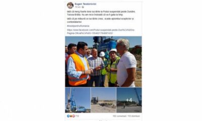 • ministrul Finanţelor Publice, Eugen Teodorovici, dar şi ministrul Transporturilor, Răzvan Cuc, au vizitat, recent, şantierul podului suspendat peste Dunăre pe malul din Tulcea • la...